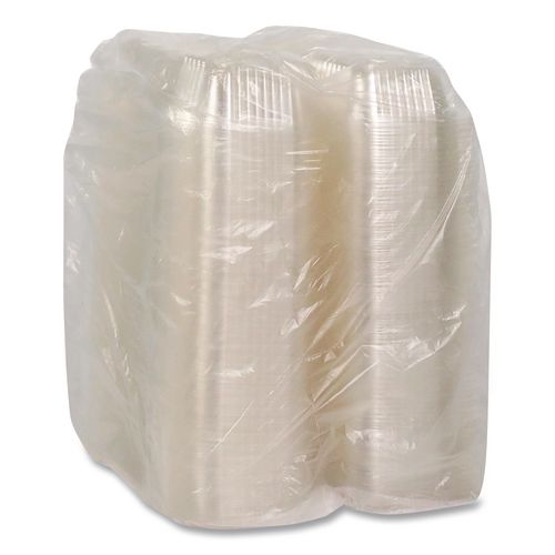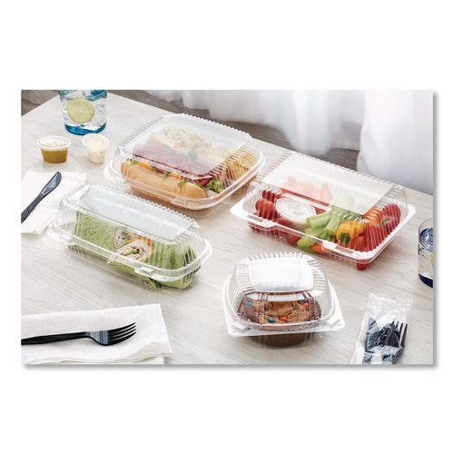 Enhance your packaging with the clarity and distinction of PET bakery containers. Our packaging effortlessly combines style and functionality to meet all your food packaging needs effectively. Made from strong PET material with a wide temperature resilience range (-20°F to 120°F) enables placement in freezers and heated display cases. Crystal clear packaging to optimize merchandising of baked goods. Great for merchandising bakery items, cheeses, produce, sandwiches, and more. SmartLock® system features a tight, audible click closure that helps ensure maximum food freshness. Smooth front panel makes sticker-labeling easy. Strong, rib-reinforced sides and back accommodate heavy items and provide enhanced crush resistance. Break-resistant hinge is flexible enough for easy closure and reliable enough for repeated openings and closings.