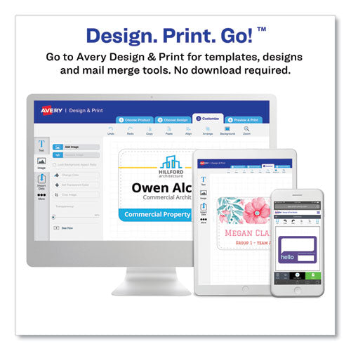 These badges feature a durable, easy-to-load, open top, pocket-style design. White micro-perforated name badge inserts are printable on both sides and separate cleanly leaving smooth edges. Create badges with text and colorful graphics using free designs and templates with Avery® Design & Print. Plastic holder is reusable and displays names clearly. 8.5 x 11 sheets for laser and inkjet printers.Package Includes: (102) Printable Name Badge Inserts