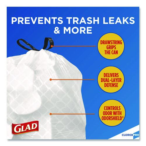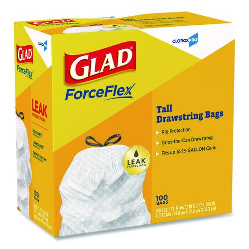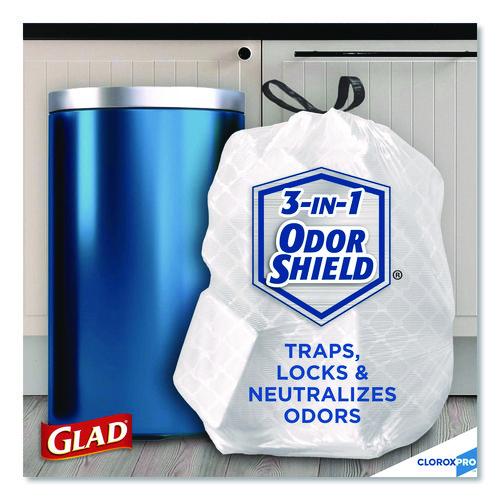 Prevent the spread of odor-causing bacteria with Glad®. These OdorShield® bags provide lasting freshness as it continuously neutralizes nasty kitchen odors. The ForceFlex™ technology delivers extra toughness as it flexes and expands around sharp edges and heavy loads without ripping. Featuring RipGuard and LeakGuard technology, these trash bags guard against punctures and tears, and traps liquids in the bag so you can put your most demanding trash up for the challenge. Let the stretchable strength of Glad handle all the messes our busy daily life can throw at it and then some. The Grips-The-Can Drawstring ensures that the bag stays in place, until you are ready to take it out. The 13 gallon size is perfect for the kitchen or throughout the office and is great for your seasonal cleaning needs like Spring Cleaning and Back to School. Packaging may vary.