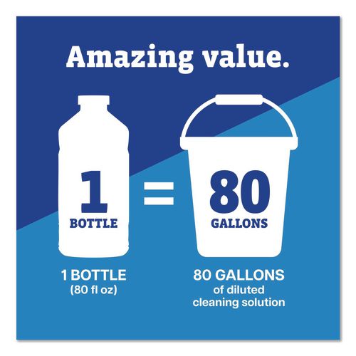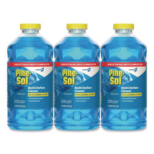 With Pine-Sol® Multi-Surface Cleaner from CloroxPro®, you only need one cleaner to fight tough dirt, grease and grime. This 2x concentrated formula delivers more cleaning power per drop and cleans 5x better than the previous Pine-Sol® scented formula. Easier to handle and easier to store, the space saving bottle size gives you more cleaning solution in a smaller bottle made of 30% less plastic. This multipurpose cleaner cleans right the first time, removing stains and deodorizing soft surfaces while leaving a pleasant scent. This powerful degreaser cuts through grime and soap scum fast and is safe for use on wood, tile, stone, porcelain and glass and more when used as directed on hard nonporous surfaces. Do not use on marble, aluminum, copper or wood that is unfinished, unsealed, unpainted, waxed, oiled or worn. Ideal for offices, daycares, schools, hotels, restaurants and more.