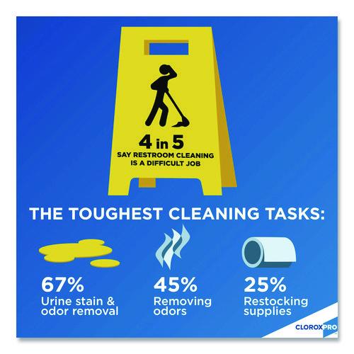 Clorox® Urine Remover for Stains and Odors from CloroxPro® tackles the toughest urine stains and odors. With the cleaning power of hydrogen peroxide, it quickly breaks down urine to eliminate odors and remove stains. This versatile cleaner is safe to use on most hard and soft surfaces. It is specially formulated for tough-to-clean porous surfaces, like grout, notorious for trapping urine odors. It also handles stains and odors on soft, absorbent surfaces like carpet and mattresses. This urine remover is also great for outdoor concrete, walls and flooring, laundry pre-treatment, pet stains, and bodily fluids removal including feces, blood and vomit. Ideal for offices, day care centers, schools, hotels, restaurants and other commercial facilities.