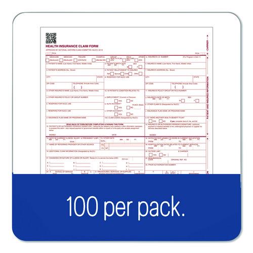 CMS Health Insurance Claim Form, Two-Part Carbonless, 8.5 x 11, 100 Forms Total