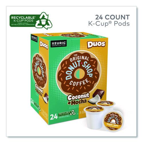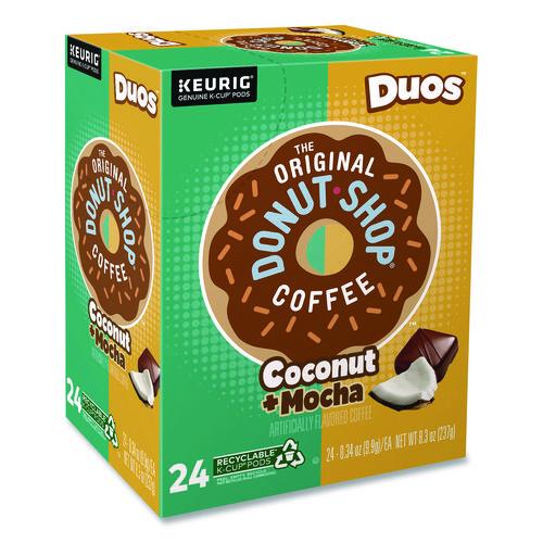 Enjoy all of the fun of your favorite donut without the calories. This coffee provides the flavor of a rich chocolate donut, topped with flaky coconut, dipped into your favorite mug. Made with 100% Arabica coffee. K-Cups® for the Keurig® system make it easy to brew the perfect cup every time.Note: This is a non-returnable item.