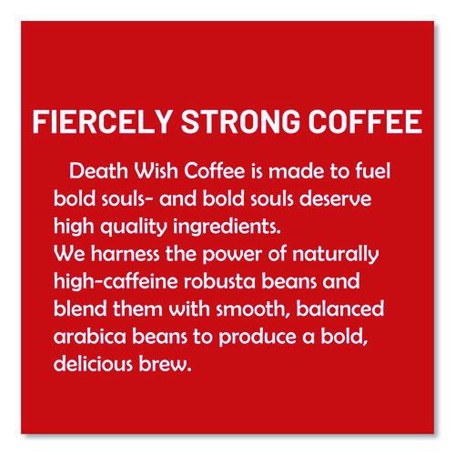 Not a morning person? Not a problem. Death Wish Coffee beans may be the only morning friend you'll ever need. Sourced from high-quality USDA Organic and Fair Trade coffee beans in the world and roasted to deep, never-bitter perfection, with notes of dark chocolate and black cherry. At least one cup is recommended first thing in the morning in total isolation.This is apound of power: basic brews not invited.Note: This is a non-returnable item.