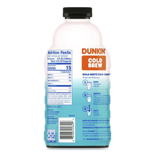Want to make delicious cold brew coffee at home but skip the actual cold-brewing part? The Dunkin' cold brew concentrate has you covered. Just fill your glass with ice and add equal parts water and coffee concentrate. Or, for an even stronger beverage, add more coffee concentrate. Then sip it straight, or customize it with your favorite sweetener and creamer. Either way, the result is bold and smooth, just the way you like it.Note: This is a non-returnable item.