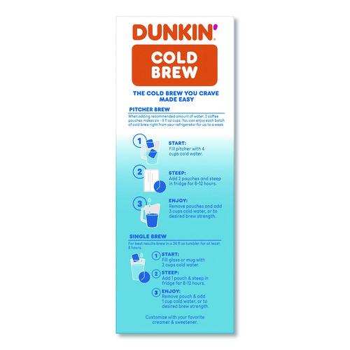 Bring the coffee shop taste to your home or office with Dunkin' Cold Brew packs which allow for a customizable, craft experience. Get cold brew coffee right from your refrigerator. This specially crafted blend delivers the smooth, bold, full-bodied brew you crave in a few simple steps. Just drop two coffee packets into four cups of water and allow them to steep in your fridge overnight (8 to 12 hours). Then, remove the pouches and add three cups of cold water, or as much as you need to achieve your desired brew strength. All that's left is to sit back and relax, enjoying your cold brew for up to a week. Drink it straight from the pitcher or customize it with your favorite creamer and sweetener — either way, that rich Dunkin' taste is just a few steps away.Note: This is a non-returnable item.