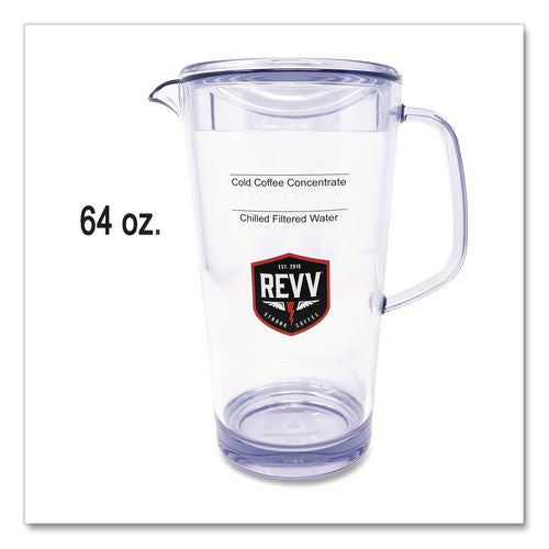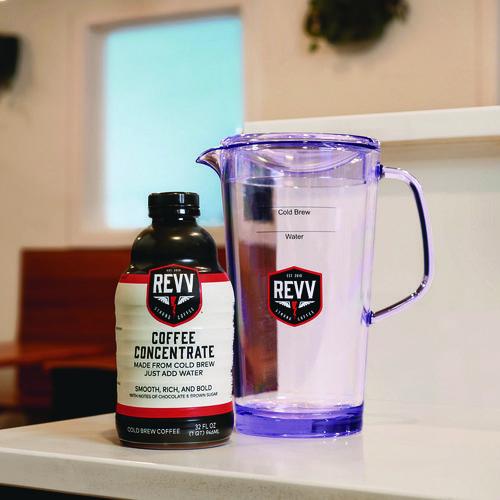 Reduce steps in Keurig REVV cold coffee preparation by using the REVV pitcher. Designated chilled water and cold coffee measurement lines guarantee concentrate is prepared to optimal strength and taste.