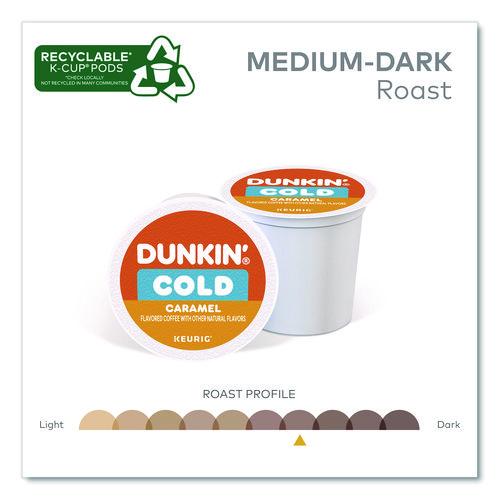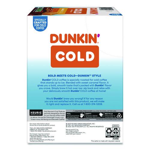 Making iced coffee that satisfies calls for something bold enough to handle the cold. The Dunkin' Cold coffee pod steps up to the task. This blend is specially roasted for cold coffee that stands up to ice, giving you a smooth, bold taste packed with the Dunkin' flavor you crave. To prepare, simply fill a tumbler or mug about 0.75 of the way full with ice, and brew a K-Cup pod directly over it with your Keurig coffee maker (glass not recommended when pouring hot coffee directly over ice). Stir for at least 10 seconds and enjoy. Easy, convenient, and most importantly, delicious.Note: This is a non-returnable item.