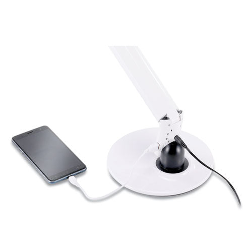 Feeling a bit blue? Let it show! With a one-of-a-kind look, this desk lamp offers stunning light that changes color! It features a color changing strip activated via the touch-sensitive color selection wheel. The dimmer function even lets you select the brightness level out of three levels. Charge your phone or tablet right from your desktop, too! The included USB port provides the ability for you to easily charge your most needed devices.