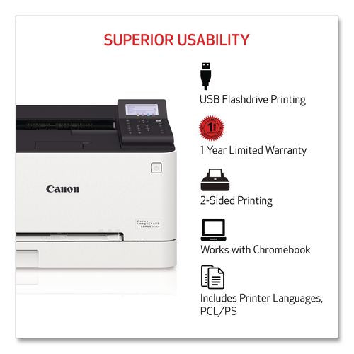 Designed for small- and medium-size businesses, the imageCLASS LBP633Cdw model balances speedy performance and minimal maintenance. This Wi-Fi® Direct printer delivers fast, exceptional color laser output and offers a variety of mobile solutions for printing on the go.Package Includes: Cartridge 067 Starter Toner; Power Cord; Documentation