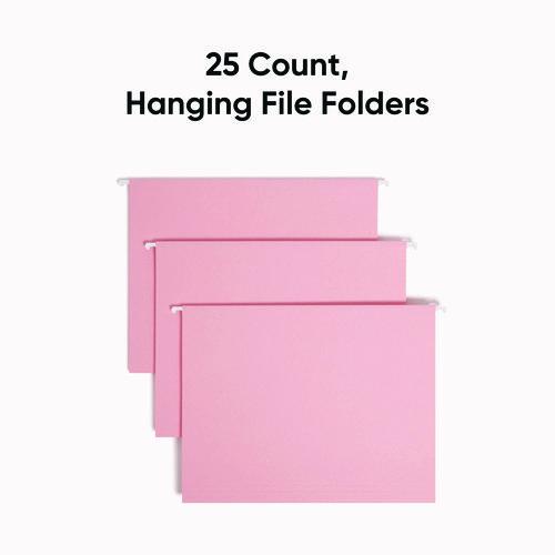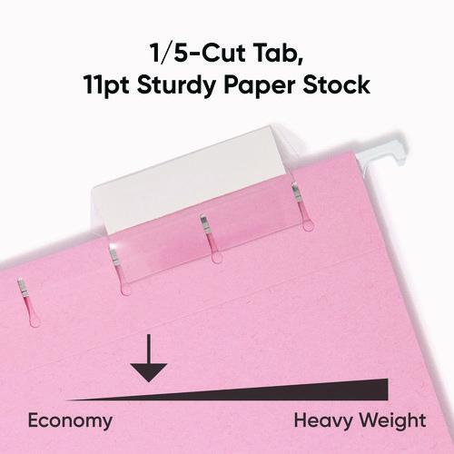 Colored Hanging File Folders with 1/5 Cut Tabs, Letter Size, 1/5-Cut Tabs, Pink, 25/Box
