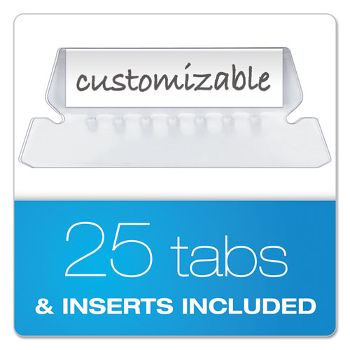 Put color to work in your filing system. Vividly colored folders are indispensable for all of your office and home filing needs. Two-tone design, with a Kraft interior, helps prevent misfiling. Includes clear tabs and blank white inserts (unless otherwise noted).Package Includes: (25) Tabs; (25) Customizable Tab Inserts