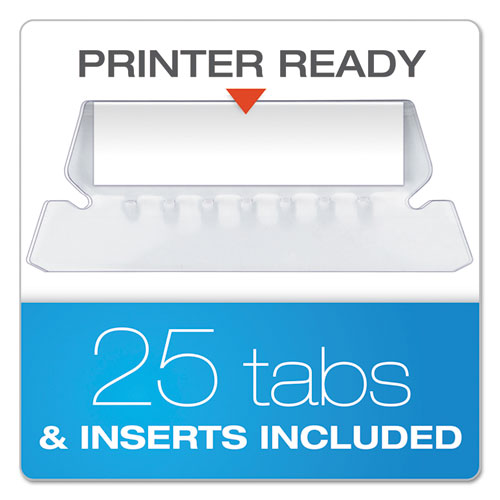 Use color to simplify filing: categorize subjects by color and count on the coordinating, lighter interior color to help prevent misfiles. Now includes letter size, printer-ready inserts to use with clear tabs (included). Folders feature polylaminate at all critical points. Exceptional tear and fold strength.Package Includes: (25) Plastic Tabs; (25) Customizable Tab Inserts