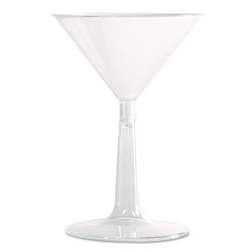 This elegant crystal-clear stemware looks just like glass. The simple, two-piece construction allows you to stack the pieces separately, conserving storage space. This stemware provides the beautiful presentation of glass in a sturdy, plastic form. They are also conveniently disposable.Note: This is a non-returnable item.