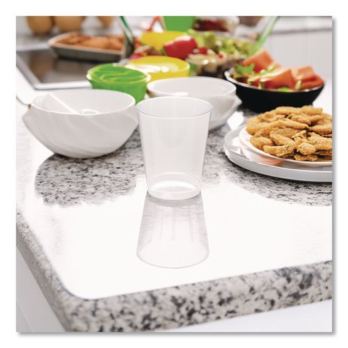 The clear plastic of these tumblers makes them look just like glass. Their rigid, hard plastic provides a sturdiness and strength that glass lacks. They offer the classic look of glass with the convenience of a disposable. They are perfect for serving beverages at parties.