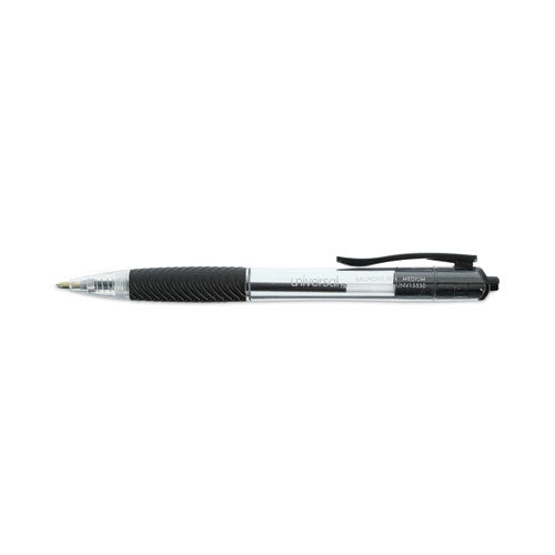 Comfort Grip Ballpoint Pen, Retractable, Medium 1 mm, Black Ink, Clear/Black Barrel, Dozen