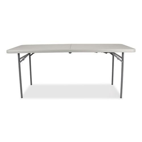 Discover the pinnacle of industrial-strength, foldable tables designed for demanding environments. Merges unparalleled durability with a robust, unobstructed design, making it the ideal choice for heavy-duty applications both indoors and outdoors. Crafted from high-density blow-molded plastic, this table is scratch-resistant, ensuring it withstands the rigors of daily use. The unique leg design, placed near the ends of the table, eliminates traditional wishbone legs that obstruct seating, allowing for extra seating capacity and comfort at both ends. This versatile table provides ample space for various activities, making it perfect for meetings, training sessions, community events or gatherings. The steel legs and the 1.75" thick blow-molded top, supported by an industrial-grade 18-gauge frame, ensure that the table remains stable on any surface. Non-slip covers on the legs protect both the table and the floor, enhancing safety and preventing damage. Best of all, its design allows for quick and easy setup—no assembly required. Simply unfold the table in seconds for immediate use, making it an ideal solution for both indoor and outdoor activities.Note: This is a non-returnable item.