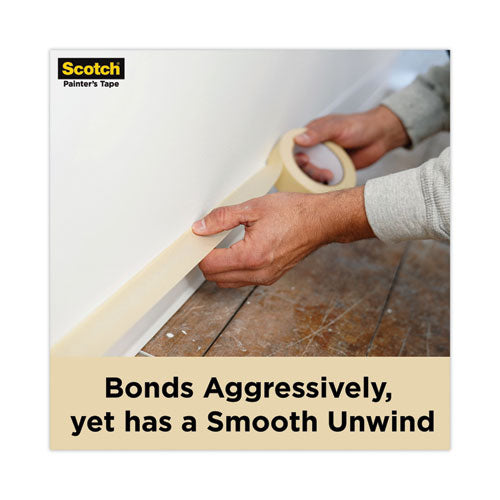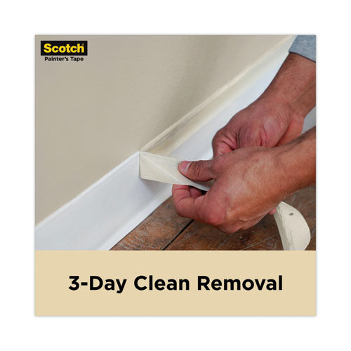 Scotch® Contractor Grade Masking Tape is a general purpose masking tape designed for use on non-damageable surfaces. Use on vinyl, carpet, metal, and plastic for the protection you need to get the job done. This masking tape holds to surfaces for up to three days and then removes easily without leaving any sticky residue behind. For great paint results make sure the surface is clean, dry and dust-free so that the tape sticks properly. Next, apply the tape onto the surface while pressing down firmly as you go. And lastly, let the tape set for about 30 to 60 minutes before painting. Wait until the paint is dry to the touch before removing the tape. Lift it up by slowly pulling it back on itself, then removing at a 45-degree angle.