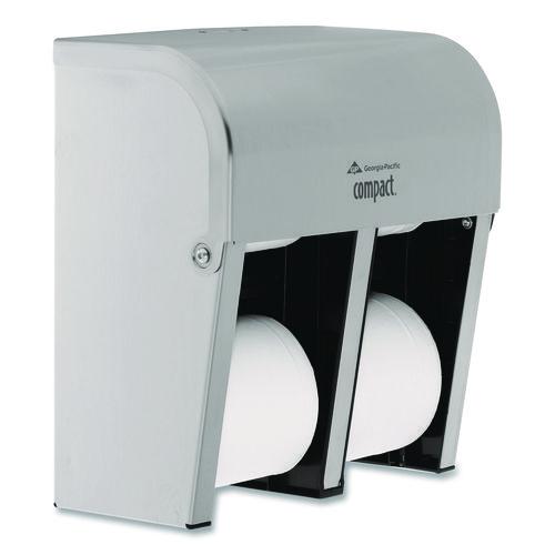 Attractive four-roll vertical coreless bathroom tissue dispensing system holds up to 6,000 two-ply or 12,000 one-ply sheets while maintaining a professional look. Rolls face forward to help minimize tabbing. Dependable roll advancing system provides users with continuous service. Coreless tissue reduces waste and frees up valuable space so there are no wrappers, no cores and fewer stub rolls to discard. Smaller case is easier to handle and fits storage closets better. Optional mounting brackets provide for easy installation and cleaning (sold separately).Note: This is a non-returnable item.