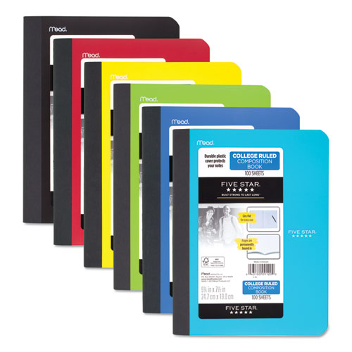 A Five Star® Composition Book is perfect for permanent notetaking. Use it in class and at home for labs, take-home assignments, and more. These composition books are made to be durable so that you don't have to worry about binding coming apart or missing pages that have fallen out. Pages are sewn in so they stay in place securely, all year long. The composition book front and back covers are plastic to resist everyday wear and tear. Use with Five Star® Study App to scan, study and organize your notes. Create instant flashcards and sync your notes to Google Drive to access them anywhere from any device.
