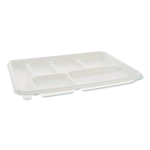 Our EarthChoice School Lunch Trays offer a sustainable mealtime solution that can help you meet your sustainability goals and keep operations running smoothly. These trays are made from a renewable fiber blend. Trays are easy to separate for staff and strong enough to handle hearty menu items. The sustainable packaging material includes an annually renewable blend of sugar cane (bagasse) and bamboo. Food can be placed directly on the grease and moisture-resistant tray. These durable trays can hold up to heavy and saucy foods like spaghetti, meatballs and other cafeteria favorites.Note: This is a non-returnable item.
