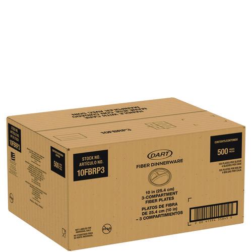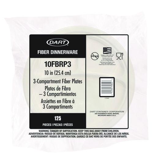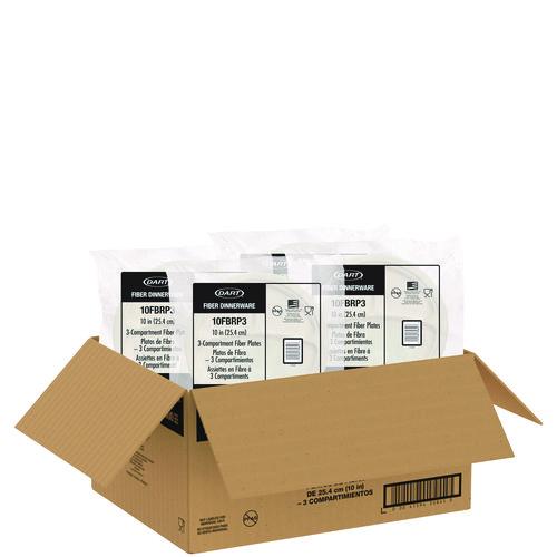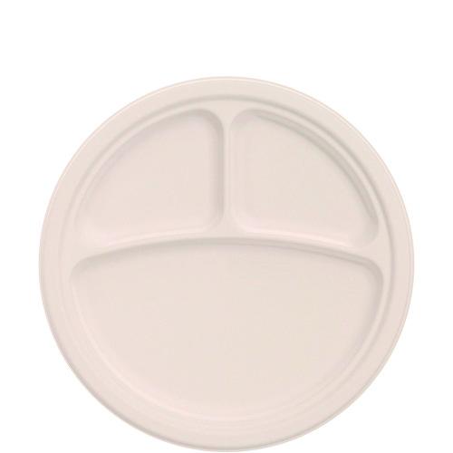 Compostable Molded Fiber Dinnerware, ProPlanet Seal, 3-Compartment Plate, 10.2" dia, Natural, 500/Carton