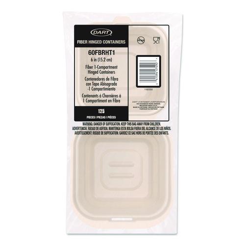 Compostable Molded Fiber Hinged Trays, ProPlanet Seal, 6.12 x 5.87 x 3.1, Natural, 500/Carton