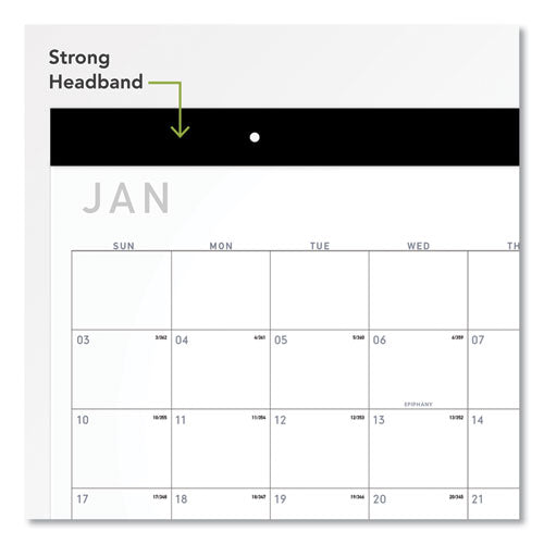 Contemporary desk pad features a fashion-forward color scheme and design elements. Monthly protection for your desktop with a full 12 months of planning. One month per page with unruled daily blocks to write in notes and reminders on each date. Extra writing space for priorities also included. Full year calendar reference on each monthly calendar page makes it easy to quickly look up dates. Desk pad pages are white with black top binding.Note: This is a non-returnable item.