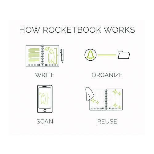 Provides a classic pen and paper experience, yet is built for the digital age. Although it feels like a traditional notebook, the Rocketbook Core is endlessly reusable and connected to all of your favorite Cloud services. When you write using any pen from the Pilot® Frixion line, your writing sticks to Rocketbook Core pages like regular paper. But add a drop of water and the notebook erases like magic.Package Includes: (1) Microfiber Cloth; (1) Pilot® FriXion Pen