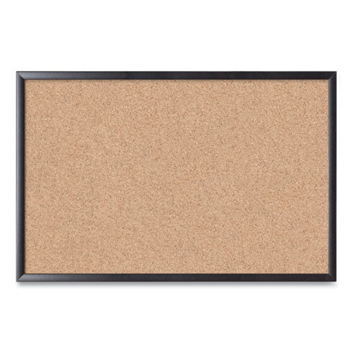 Cork Bulletin Board, 36" x 24" (Actual Size: 35" x 23"), Tan Surface, Black Wood Frame