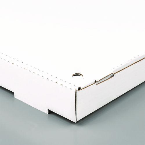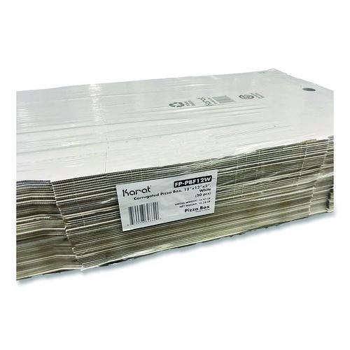 Karat® Corrugated Paper Boxes are crafted for top-notch quality with durable B-flute construction and grease-resistant properties. The thoughtful design features four vent holes on the top, ensuring your pizzas, pastries and pies remain fresh and delectable, reminiscent of just emerging from the oven.