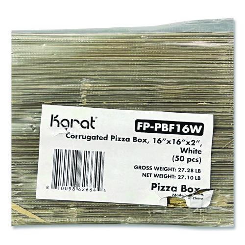 Karat® Corrugated Paper Boxes are crafted for top-notch quality with durable B-flute construction and grease-resistant properties. The thoughtful design features four vent holes on the top, ensuring your pizzas, pastries and pies remain fresh and delectable, reminiscent of just emerging from the oven.