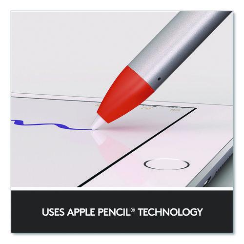A versatile digital pencil for all iPads® (2018 releases and later) that lets you use hundreds of Apple Pencil® supported apps in dynamic new ways. Uses Apple Pencil® technology for an ultra-responsive, ultra-precise writing experience that feels as natural as pen and paper. Scribble automatically converts your handwriting to type. Just tilt for thicker or thinner lines—a smart tip adjusts line weight automatically. No pairing required; just turn on and draw. Throw it in a bag or stick it in your pocket—Logitech® Crayon is tough enough to go anywhere you do with 4 ft drop protection, secure tethered cap, and a flat shape to prevent it from rolling off desks or tables. Provides up to 7.5 hours of active writing time on a full charge. A quick two minutes of charging will give you 30 more minutes of active writing time. Rest your hand on the screen while you write—Logitech® Crayon automatically ignores stray touches so you can focus on the task at hand.