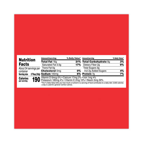 Enjoy this classic paired with jelly or have a healthy snack by adding to veggies or fruit when using Jif Creamy Peanut Butter. The product is smooth, creamy and made with a fresh roasted peanut taste the entire family will enjoy. Jif natural creamy peanut butter is ideal for a variety of recipes such as sandwiches, baking or just eating directly with a spoon. It comes in a large 40 oz jar with about 34 servings per container, plenty for when hunger strikes. It has 190 calories per serving with no trans fat or cholesterol, is gluten free and a good source of protein.Note: This is a non-returnable item.