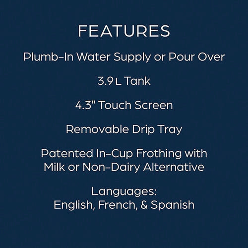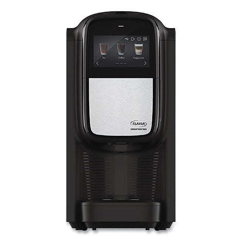 FLAVIA® Creation 300 Coffee Brewer Machine satisfies your entire office with hot and cold beverages, including coffees, teas, lattes, infused waters and more when paired with the Flavia Chill Refresh. It comes with patented, in-cup frothing with milk and nondairy alternatives. Pure Taste guarantee means this brewer is designed for no taste or allergen transfer between drinks. Pack-to-cup brewing process ensures nothing touches the ingredients other than hot water, ensuring your drink does not taste like previous brews. Smart online brewer technology makes managing office beverages a breeze through Flavia IQ. Brewer can be plumbed-in or used as a pourover unit when paired with Flavia Refill. The 4.5" high-resolution touch screen is easy to use with interactive content. Drink volume per cup comes in the following sizes: small (5.4 oz); regular (7 oz); large (8.3 oz) and over ice (3 oz). C300 machine volume capacity is seven drinks.Note: This is a non-returnable item.