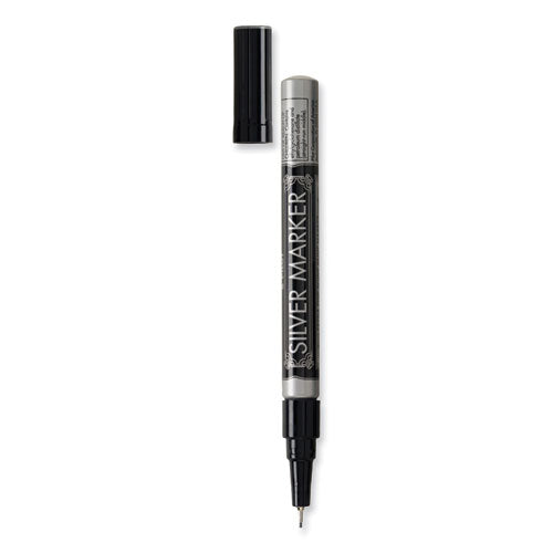 Sparkling metallic colors produce a bold, dramatic effect, making this marker ideal for special creative projects. Professional-grade ink delivery system ensures smooth permanent marking on nearly any flat surface: glass, photos, plastic, paper, etc. Flexible brush-type fiber tip simplifies the creation of finely detailed work.