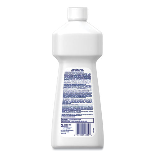 Deodorizing Cleanser with the power of bleach is a cream with a soft abrasive that scours and functions as a stainless steel cleaner and porcelain surface cleaner. It clings to vertical and hard-to-reach surfaces, like toilet bowls. Use in employee and customer restrooms to clean toilet bowls, urinals, sinks/vanities, wall tiles and chrome. This Comet multi-surface cleaner also works on stainless steel surfaces, stove tops and ranges, and the insides and outsides of plastic containers.