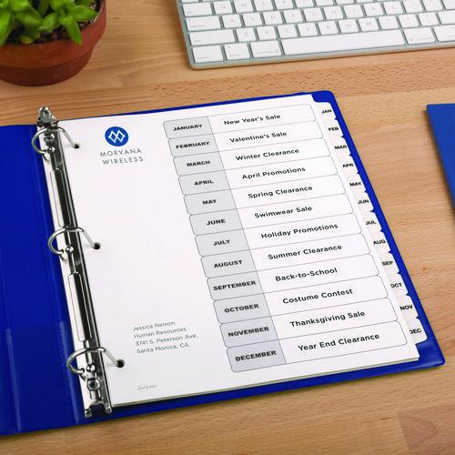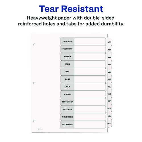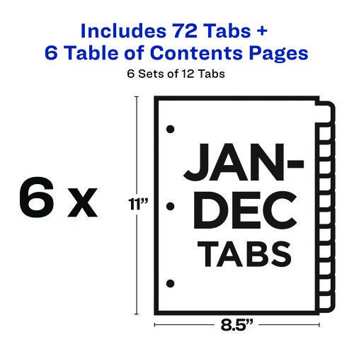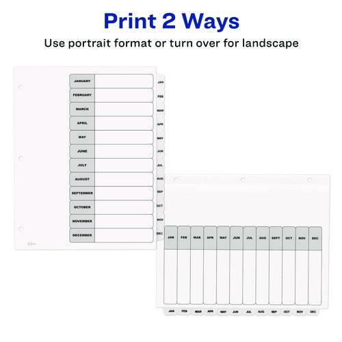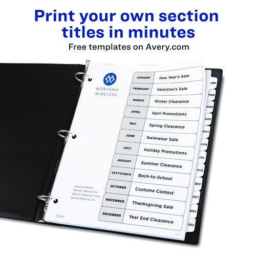 Customizable Table of Contents Ready Index Black and White Dividers, 12-Tab, Jan. to Dec., 11 x 8.5, White, 6 Sets