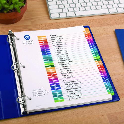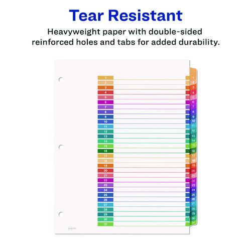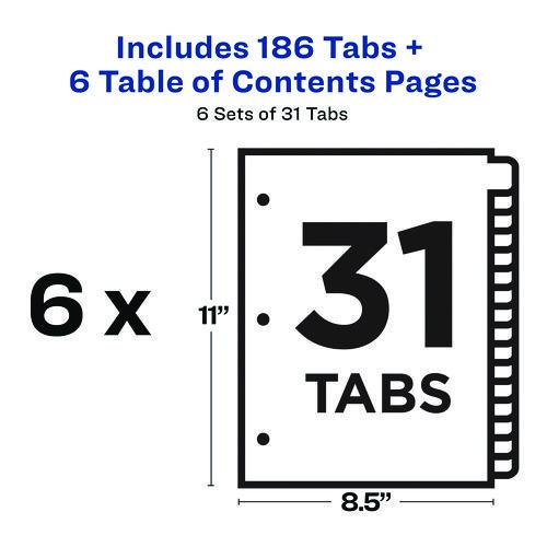 Customizable Table of Contents Ready Index Multicolor Dividers, 31-Tab, 1 to 31, 11 x 8.5, White, 6 Sets