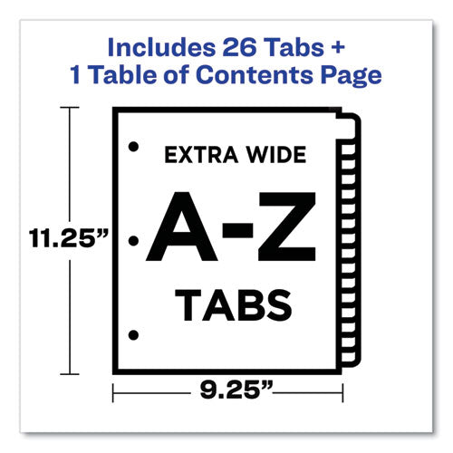 Customizable TOC Ready Index Black and White Dividers, 26-Tab, A to Z, 11 x 9.25, 1 Set