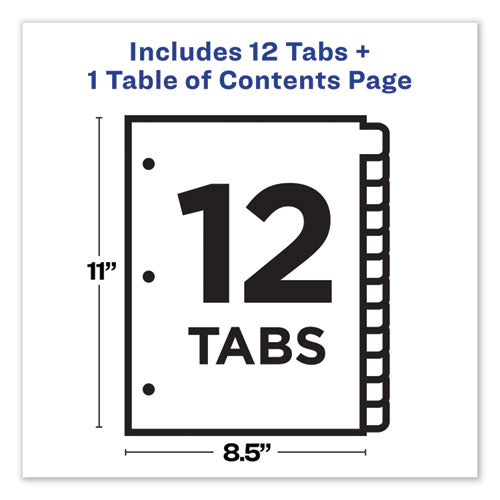 Customizable TOC Ready Index Multicolor Tab Dividers, 12-Tab, 1 to 12, 11 x 8.5, White, Traditional Color Tabs, 1 Set