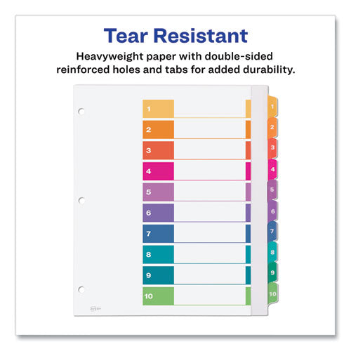 Customizable TOC Ready Index Multicolor Tab Dividers, Extra Wide Tabs, 10-Tab, 1 to 10, 11 x 9.25, White, 1 Set