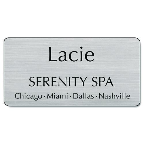 Create your own high quality, economical name badges. Choose from nine engraving colors and five fonts. Includes fastener. Text only. Accommodates up to three lines of text. Assorted colors.Note: This is a non-returnable item.
