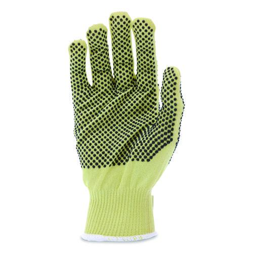 Kevlar® string knit gloves are used for general purpose work applications to provide cut and abrasion resistance, using high performance yarns, to further protect the hands when working with sharp objects. The 9396 features a light weight 100% DuPont™ Kevlar® material with PVC dots on both sides.
