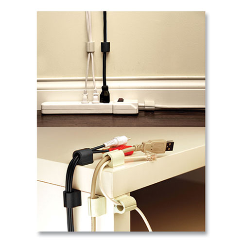 Feed loose cords across vertical and horizontal flat surfaces, accommodating corners, edges and curves along the way. Simply peel and stick to mount, they're ideal for audio/video and telecommunication cords as well as chargers, power cables and holiday lights. Soft opening slit makes it easy to insert and remove cords.Package Includes: (1) Set of 3M™ Double-Sided Foam Tape Strips