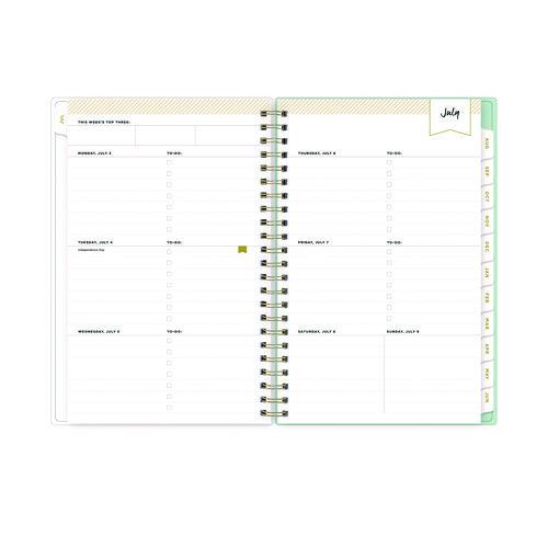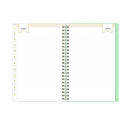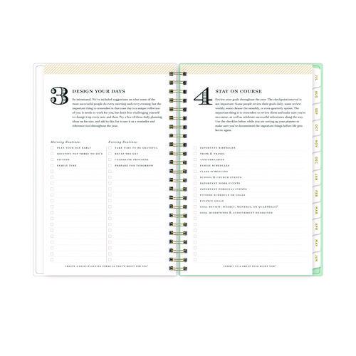 Find the balance and focus needed to increase your productivity throughout the school year. Elegant planner simplifies planning and organization with a four-step guide to success and everything you need to keep your days, weeks and months on track, while its Secret Garden Mint floral artwork features a sylvan design and a softer pastel color palette to help you maintain a tranquil outlook. The tabbed monthly section features two-page spreads with ruled blocks, past/future-month reference blocks and a checklist on the left for Notes & To-Dos. The weekly section also features two-page spreads, but with a twist. Monday through Friday features a two-column layout with open appointment scheduling on the left and a checklist for To-Dos on the right. Saturday and Sunday feature a simplified system to accommodate special events and general notes. In the back of the book, a robust ruled notes section provides extra space for lists, event-planning and more. Thick, premium paper delivers smooth writing performance with excellent ink-bleed resistance, and the book's twin-wire binding offers easy page-turning while securely keeping the cover and contents in place.Note: This is a non-returnable item.