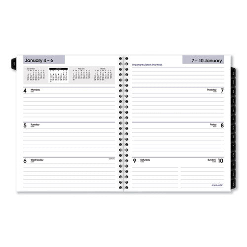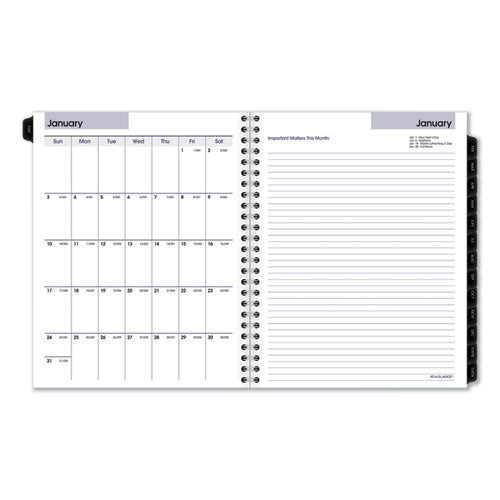 Weekly: one week per two-page spread; ruled block-style for open scheduling; past, current and two future months reference. Monthly: tabbed, full months with unruled blocks on left page, notes space on right. Separate telephone/address and special 16-page information sections. Printed on high-quality with superior ink bleed resistance.Note: This is a non-returnable item.