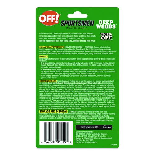 OFF! Sportsmen Deep Woods Repellent Spritz provides strong protection with 98.25% DEET formula. Repels biting insects for up to 10 hours. Non-greasy, odorless formula. Spray repels mosquitoes, ticks, chiggers, fleas, stable flies, black flies, gnats and Sandflies. Pump spray allows for easy application to skin, hair and clothing while keeping hands repellent-free. Small size convenient for keeping in a backpack or pocket.