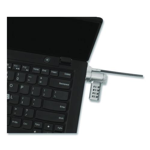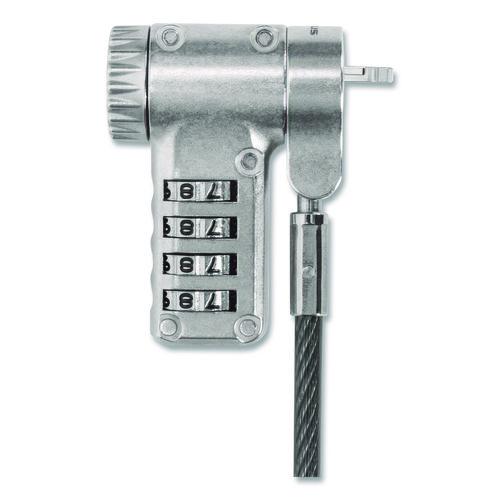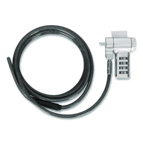 Compatible with essentially any lock slot, including oversized wedge slots, the DEFCOM Ultimate Universal Serialized Combination Lock will secure your devices with freedom from keys. Whether your team is working from home, the airport lounge, or a coffee shop, laptop locks are a must-have if you want to secure your equipment and make sure no one gets a hold of valuable or private information. Easy-to-use and easy-to-carry with their slim size, making them great for slim devices. The lock attaches to most major lock slot designs like Kensington® Nano, Kensington® K-Slot, even the oversized Noble wedge-shaped lock slots, ensuring those laptops, docking stations, or monitors stay right where they need to be. The universal fit paired with the serialized combination lock means there'll be no more worrying about losing interchangeable heads or keys. Plus, its four-digit combo lock provides up to 10,000 different codes, even further safeguarding your equipment from attempted combination guesses. The lock head can be rotated a full 360°, which helps with usability, while its six-and-a-half-foot cable of galvanized and sleeved steel makes it cut-proof and rust-resistant, yet flexible for simple installation. Ensure your expensive equipment stays safe.