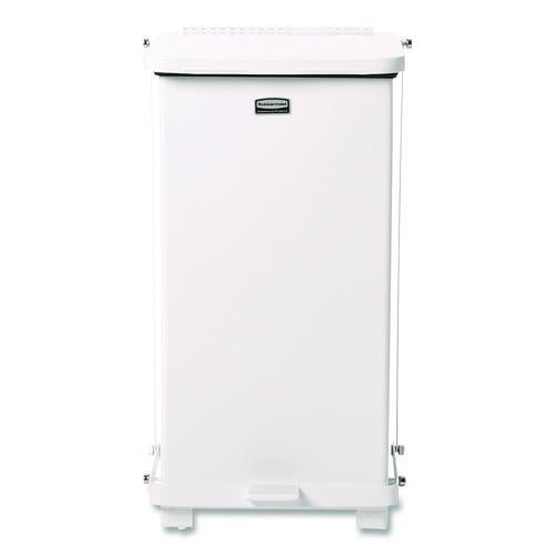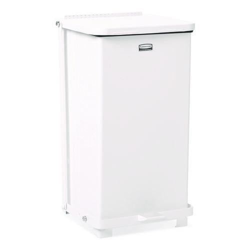 Rubbermaid Commercial Defenders Step-On Trash Can with Plastic Liner complies with OSHA standards on blood borne pathogens for the safe containment of infectious waste. These step-on trash cans feature a foot pedal for hands-free operation. Trash can is finished in powder-coat and is State Fire Marshal listed.